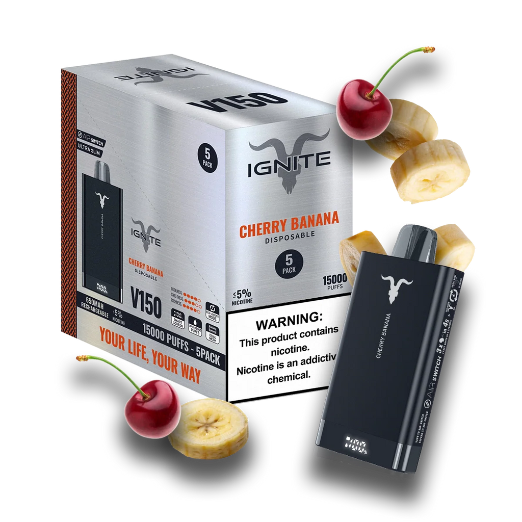 5% DE NICOTINA DERIVADA DE TABACO | BATERIA RECARREGÁVEL DE 650 mAh | ATÉ 15.000 PUFADAS Nosso mais recente dispositivo descartável V150 apresenta hardware totalmente novo e tecnologia de extração automática, garantindo a experiência de vaporização mais suave. Seu acabamento em alumínio com um toque de jato de areia adiciona uma estética elegante. A ativação é simples: basta dar três inalações rápidas em três segundos para que o crânio de cabra pisque e ligue o dispositivo. Para desligar o dispositivo, inale três vezes rapidamente. Com uma bateria de 650 mAh, ele oferece sabor para até 15.000 tragadas, o suficiente para mantê-lo satisfeito por dias. Cada dispositivo contém 5% de nicotina derivada do tabaco, proporcionando uma experiência precisa de nicotina no estilo de cigarro.